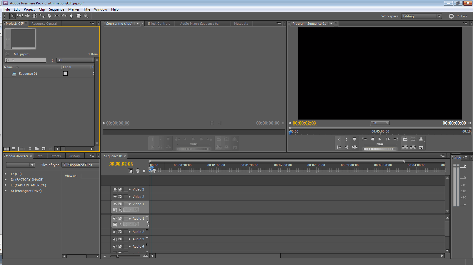 Here is an example of the initial page that opens with premier pro. The bars in the lower right hand side is where the clips will be placed and ordered. This will also allow me to clip and resize files to enhance the effect of each shot. An element that I will be manipulating a lot is the use of colour as the transition from black and white to then clear colour towards the end of the video. I will us the editing software to select a certain element of a shot and enhance the colour whilst turning the rest of the shot into black and white as this will denote the progression from black and white to colour.